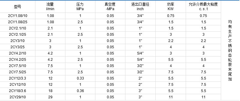 2CY系列齒輪潤滑泵主要用于各種機械設(shè)備中的潤滑系統(tǒng)中輸送潤滑油,適用于輸送粘度在10°E(75c.s.t)以下,溫度在300℃以下的具有潤滑性的油料,不銹鋼齒輪泵可輸送食用油料、飲料等。配用銅齒可輸送低閃點液體,如汽油、苯等。